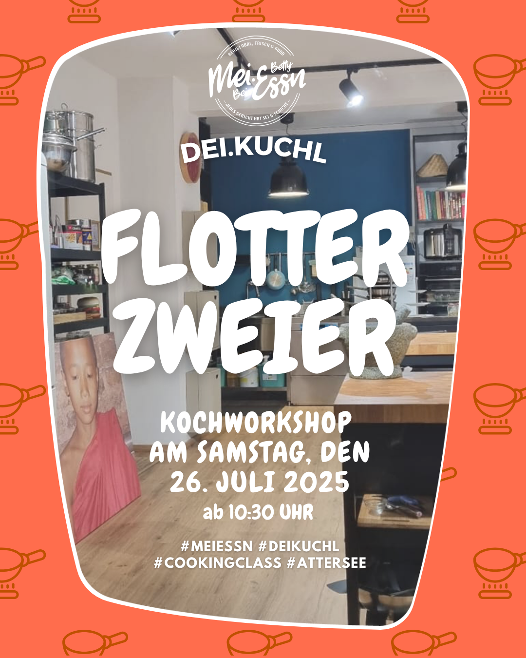 Die nächsten Koch-Workshops sind fixiert: "Flotter Zweier" 29.03.2026, 11:00 Uhr (bereits ausgebucht) "Alle guten Dinge sind Drei" 09.04.2026, 17:30 Uhr (noch 4 Plätze) "Die fantastischen Vier" 28.03.2026, 16:00 Uhr (nur noch 1 Platz) 10.04.2026, 17:00 Uhr (nur noch 2 Plätze) Das genaue Programm zu den Workshops wird noch extra ausgeschrieben. Falls du bei einem davon fix dabei sein möchtest, bitte einfach bei uns melden, per Mail an info@mei.essn.at oder telefonisch unter 0676 9618721. Oder gerne auch über unser Kontaktformular:
